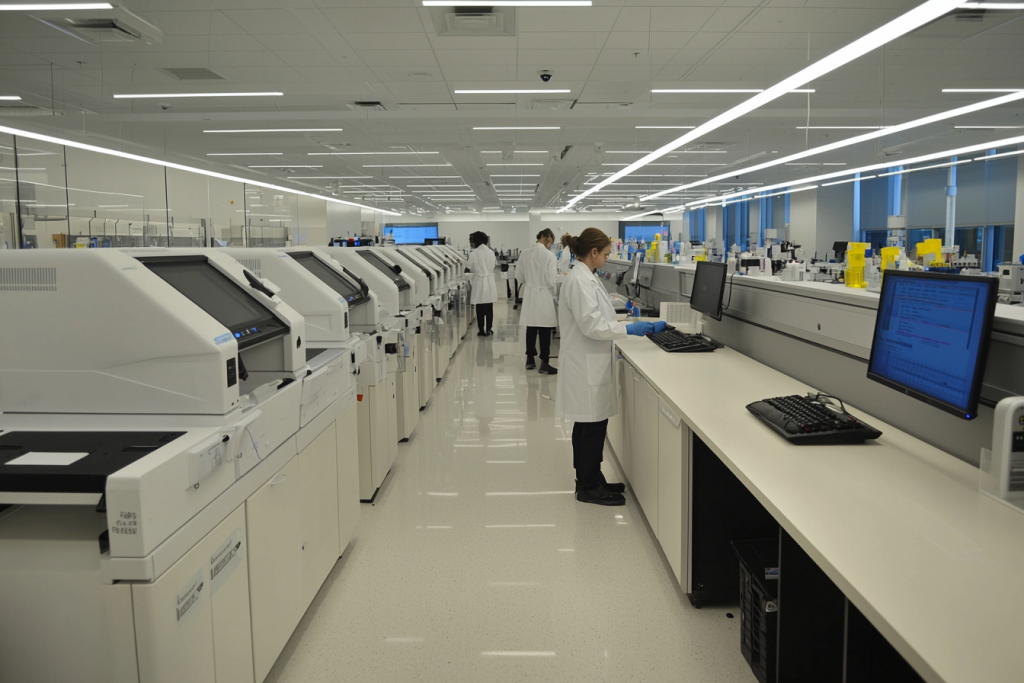 In research, genetic testing technologies have become indispensable for exploring the complexity of genomes at scale. In the laboratory, high-throughput sequencing platforms, robotic liquid handlers, and automated sample preparation systems reduce human error and accelerate experiments that once took months to complete. On the computational side, automated bioinformatics pipelines manage raw sequencing data, align genomes, identify variants, and integrate multiple data layers—including transcriptomics, epigenomics, and proteomics—without constant manual oversight. This streamlines discovery while improving reproducibility, a long-standing challenge in genomics. Functional genomics also benefits, with streamlined workflows for CRISPR-based screening, single-cell sequencing, and gene expression profiling, helping researchers uncover gene functions and disease mechanisms. In population genomics, large-scale analysis of data from thousands or millions of individuals supports genome-wide association studies (GWAS), variant frequency mapping, and ancestry research, revealing insights into human evolution, population structure, and complex disease risks. By integrating robotics, machine learning, and cloud computing, genomic research is shifting into a new era of speed, scale, and precision, fueling breakthroughs across biology, medicine, and public health.