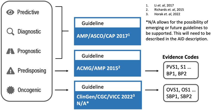 Figure 1: Assertion guidelines and their interdependence with particular focus on somatic variants but not only